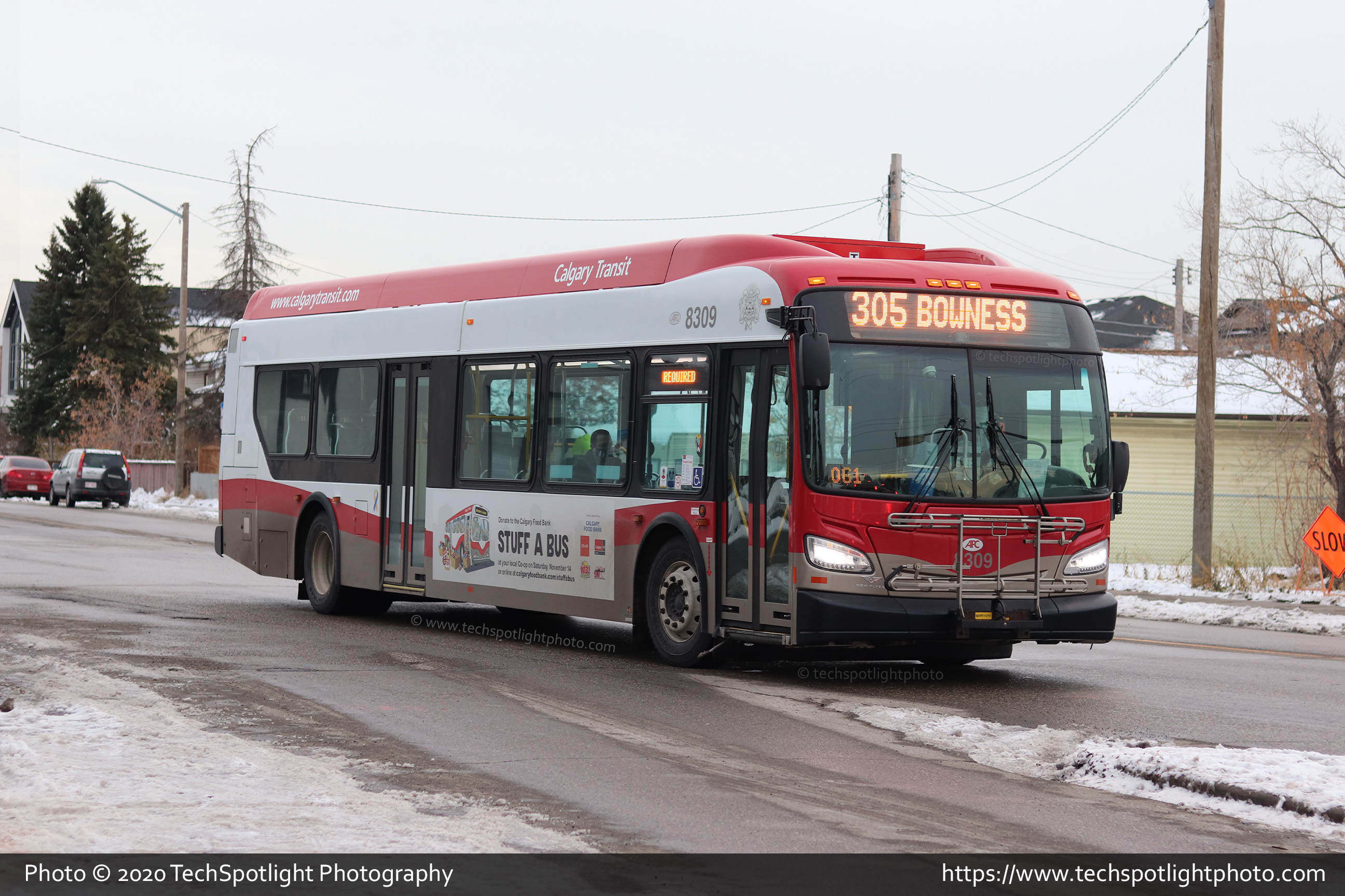 8309 is seen at Bowness Road and Home Road NW while working Route 305 BRT Bowness. |