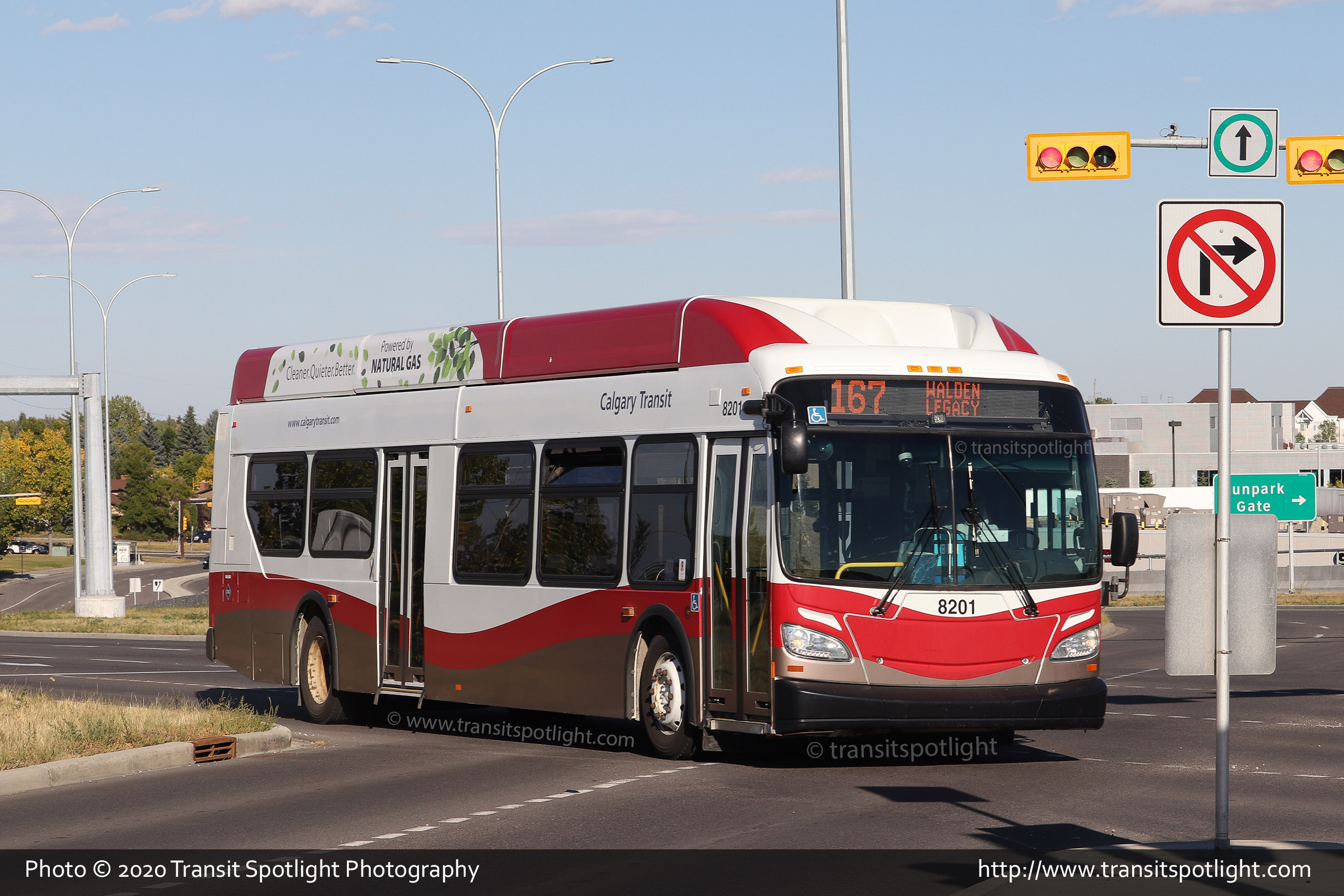 8201 is seen on Sun Valley Blvd at Macleod Trail SE while working Route 167 Walden/Legacy. |
