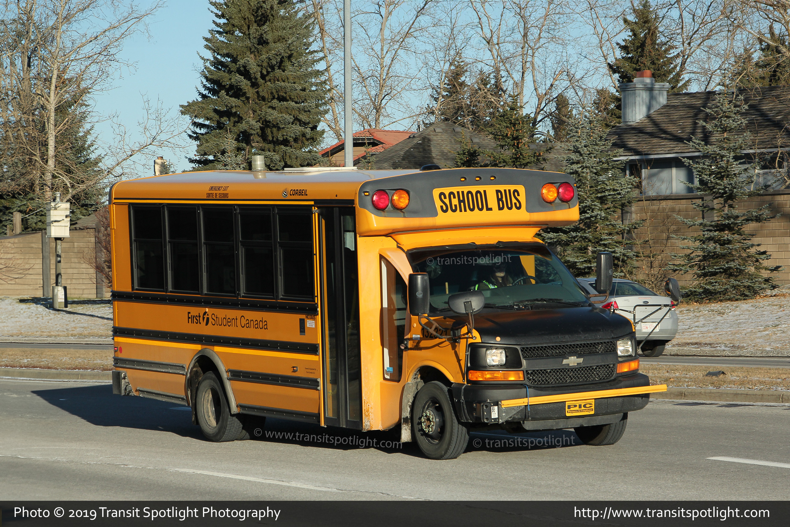 132321, a 2013 Corbeil NexBus on a Chevrolet Express chassis is seen on Old Banff Coach Road at Bow Trail SW while deadheading back to the First Student yard. |