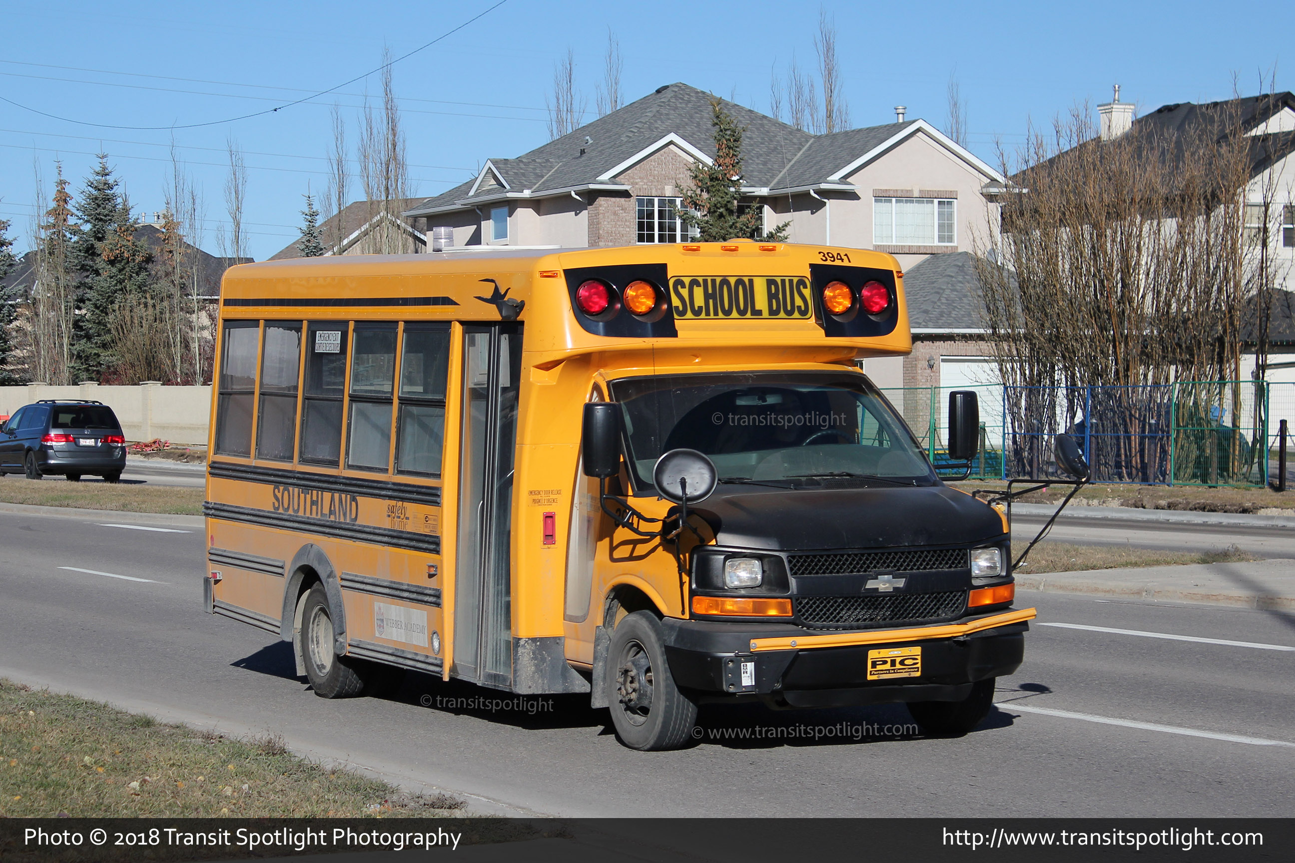 3941 is seen at 85 Street and south of Bow Trail SW, deadheading to it's assigned school to start its run. |