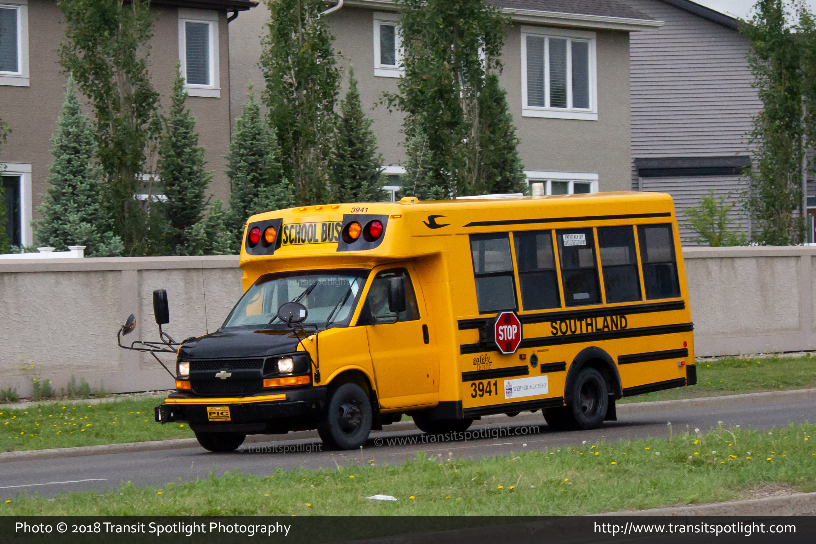 3941 is seen at 85 Street and Aspenshire Drive SW, deadheading to it's assigned school to start its run.. |