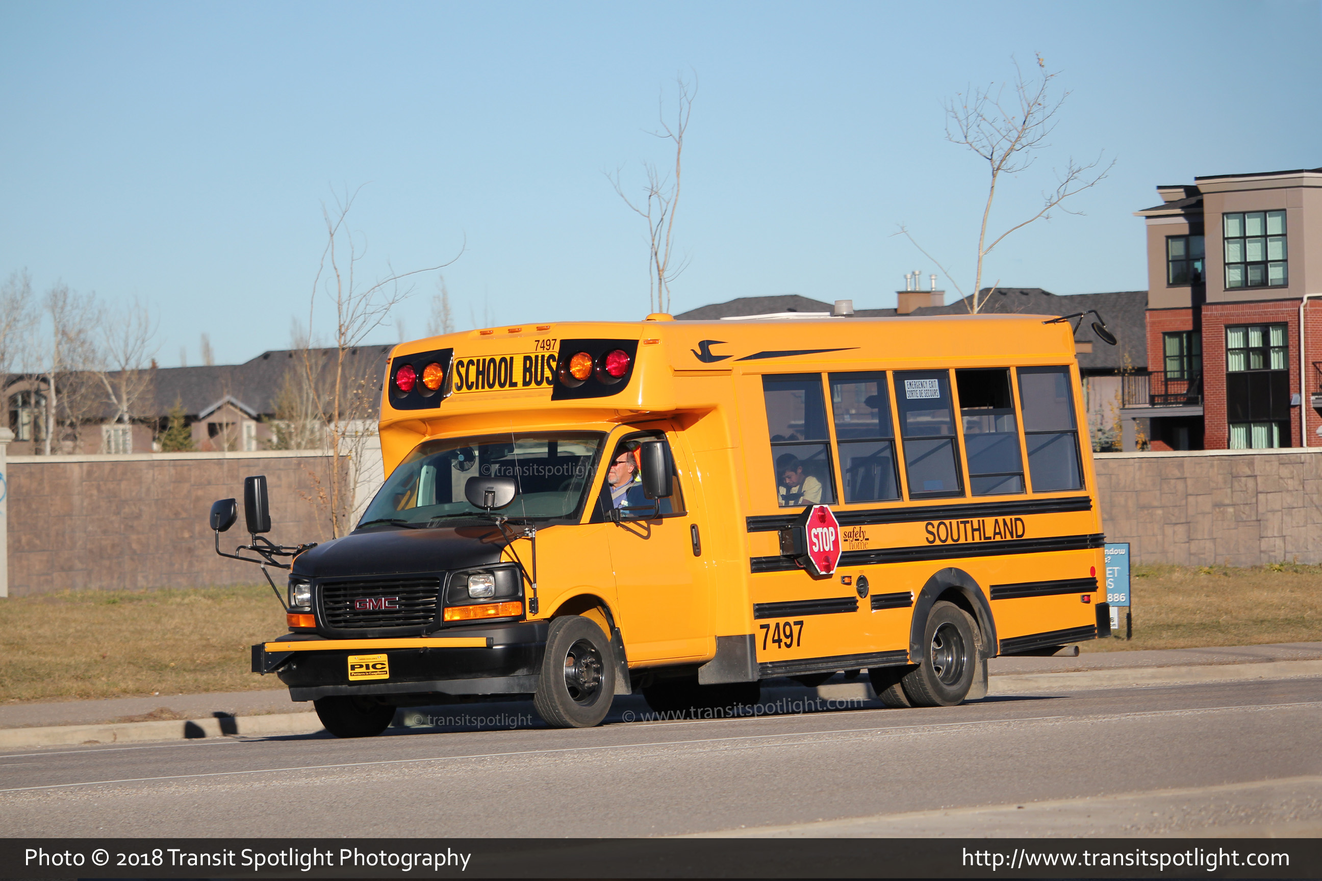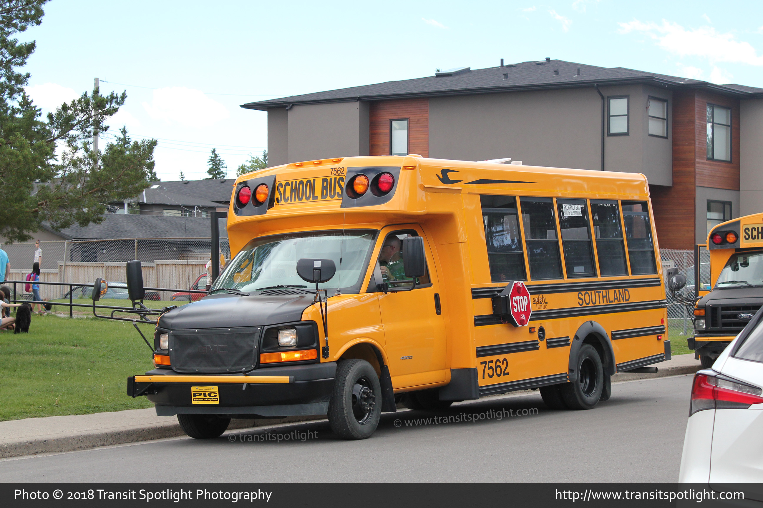 7562 is seen resting in front of Rosscarrock School on 40 Street SW while picking up passengers. |