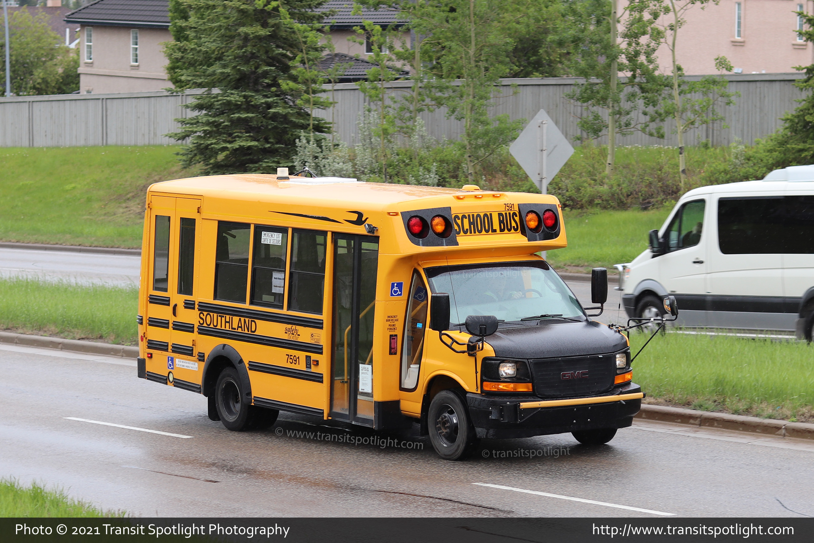 7591 is seen travelling along Country Hills Blvd, west of Edgeridge Park NW while completing its route assignment. |