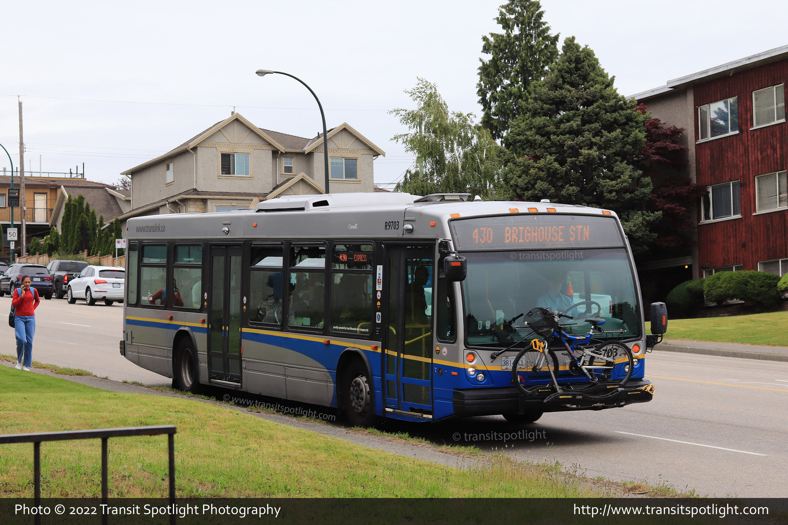 9703 is seen at Knight Street and 63 Avenue in Vancouver while working Route 430 to Richmond-Brighouse Station. |